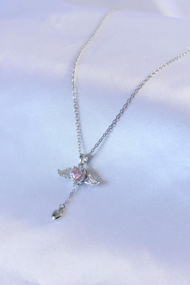 Kanatlı kalp formuyla özgürlüğü ve aşkı simgeleyen bu özel parça, ışıltılı taşları ve pembe kalp detayıyla göz kamaştırır.