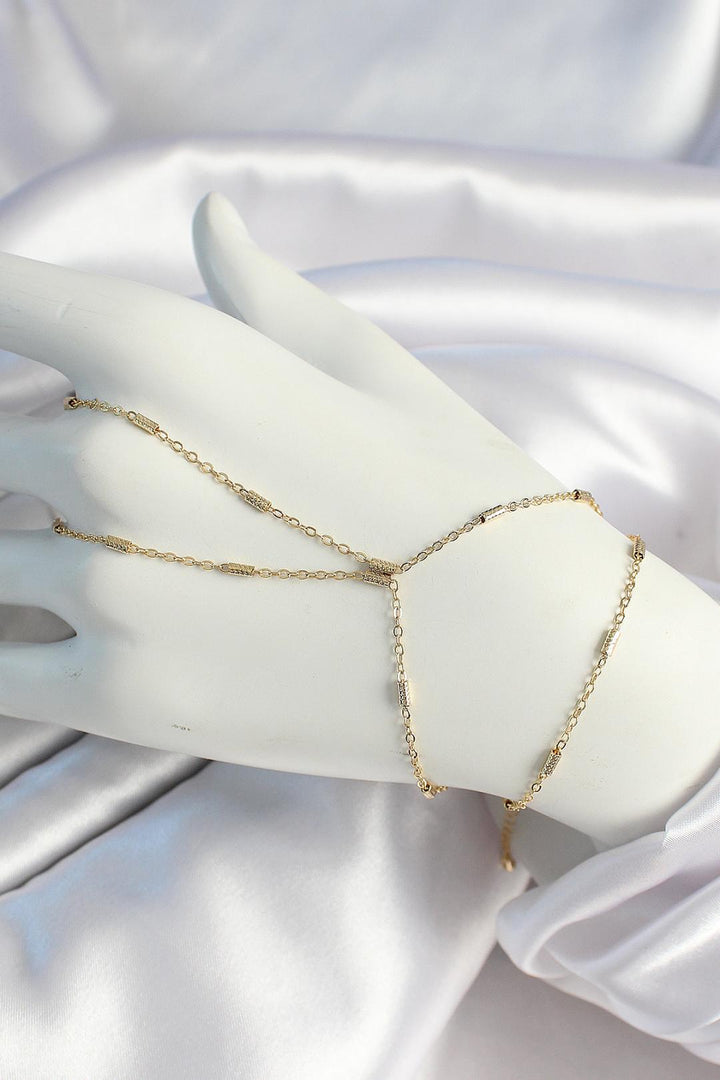 El üzerinde zarifçe uzanan parçalı zincir yapısı hareket ettikçe ışığı yansıtarak etkileyici bir görünüm sunar. Ayarlanabilir zinciri sayesinde her bileğe kolayca uyum sağlar; günlük kombinlerde minimal bir şıklık, özel anlarda ise göz kamaştırıcı bir aksesuar olur.